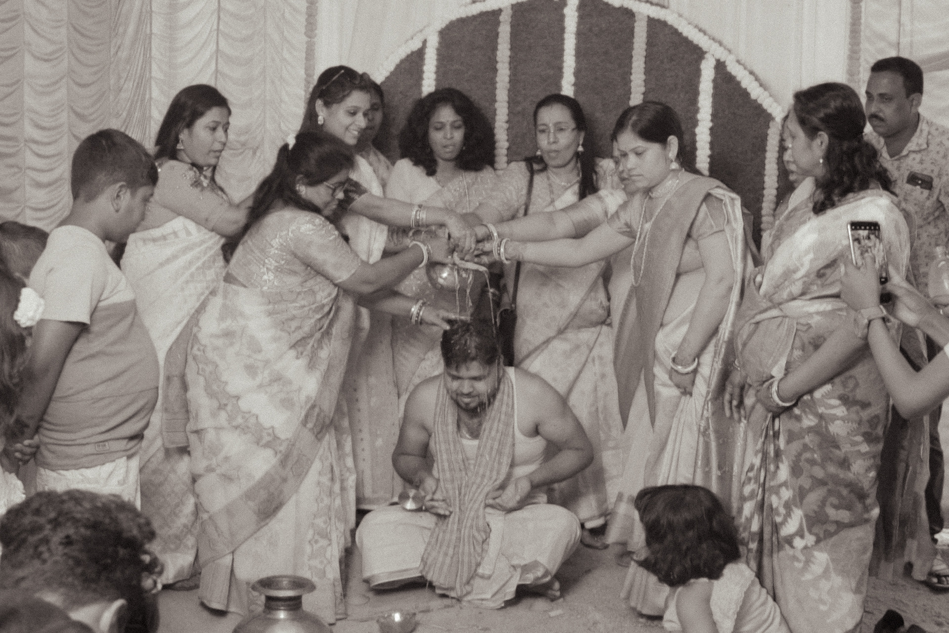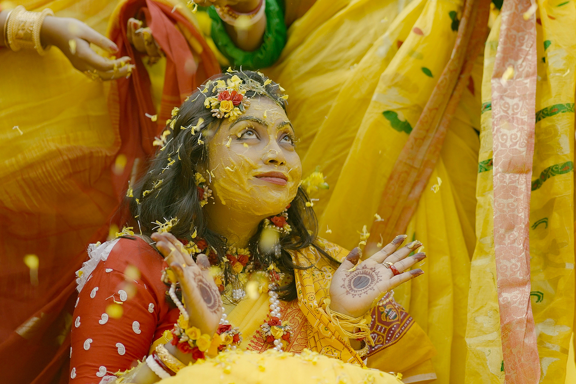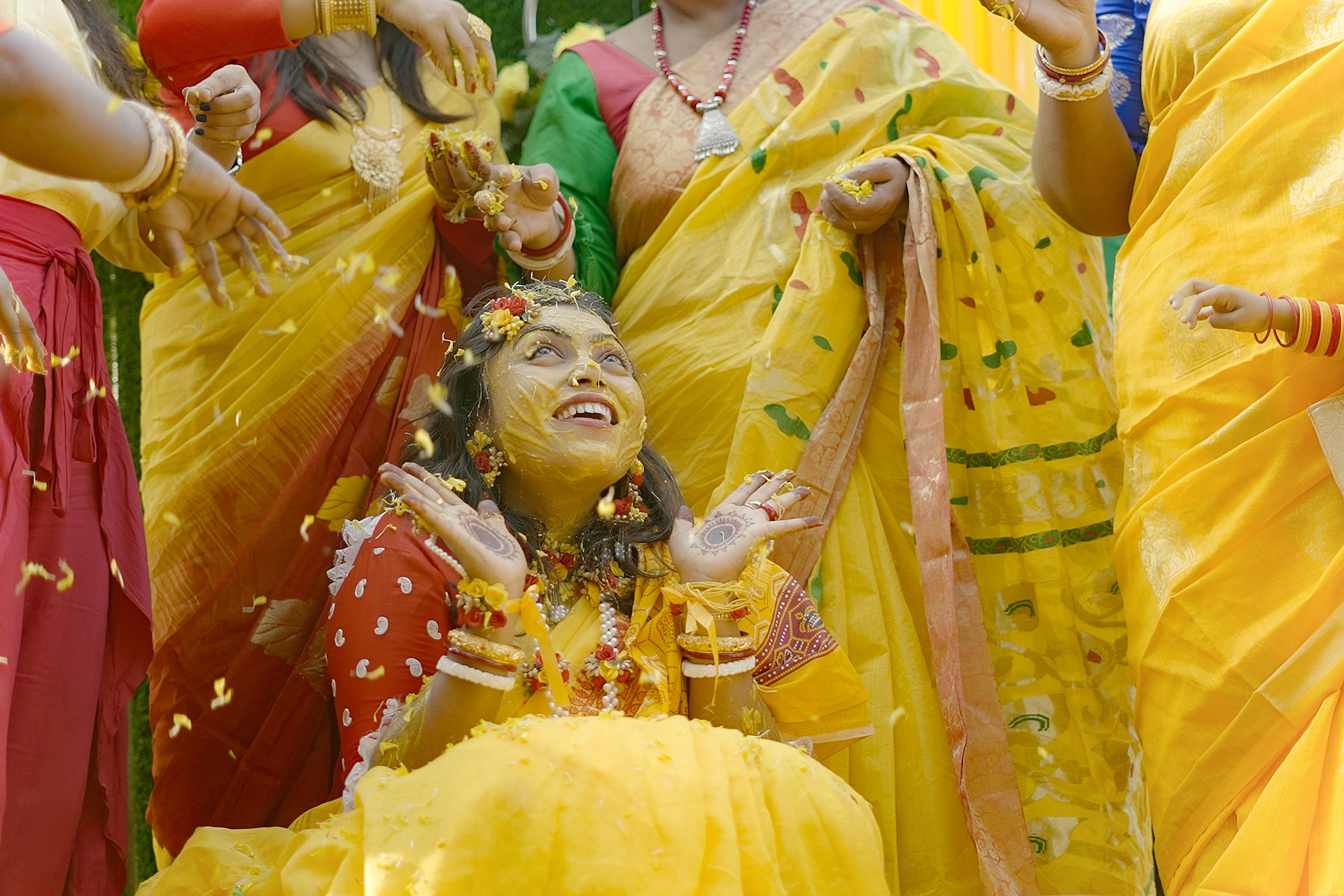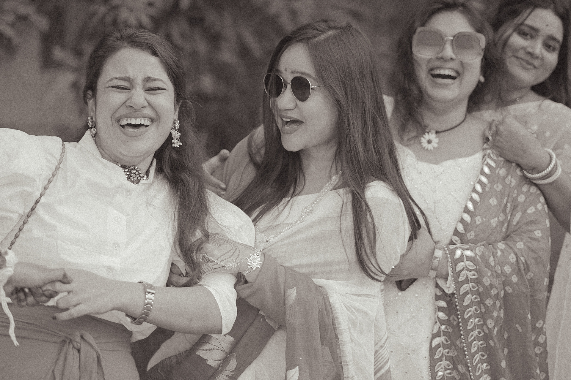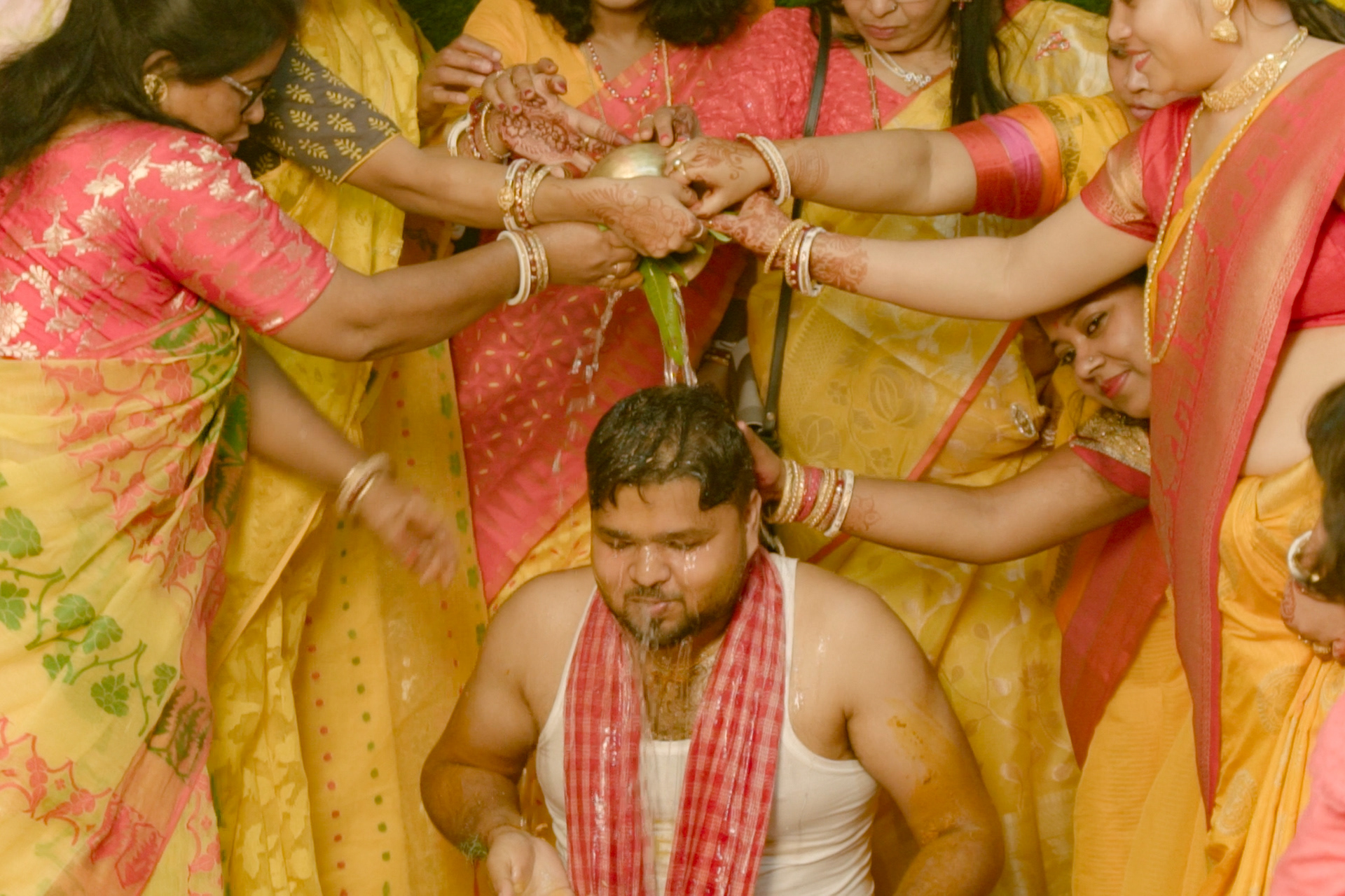 Manomita and Amiyo's Haldi ceremony was a vibrant and joyous celebration, filled with the warmth of closest friends and family. The atmosphere buzzed with laughter and excitement as everyone indulged in the traditional rituals, smearing turmeric on the couple amidst cheerful banter and heartfelt blessings. The golden hue of the Haldi added a radiant glow to the day, symbolizing prosperity and happiness for the couple. It was a memorable event, marking the beginning of their beautiful journey together.