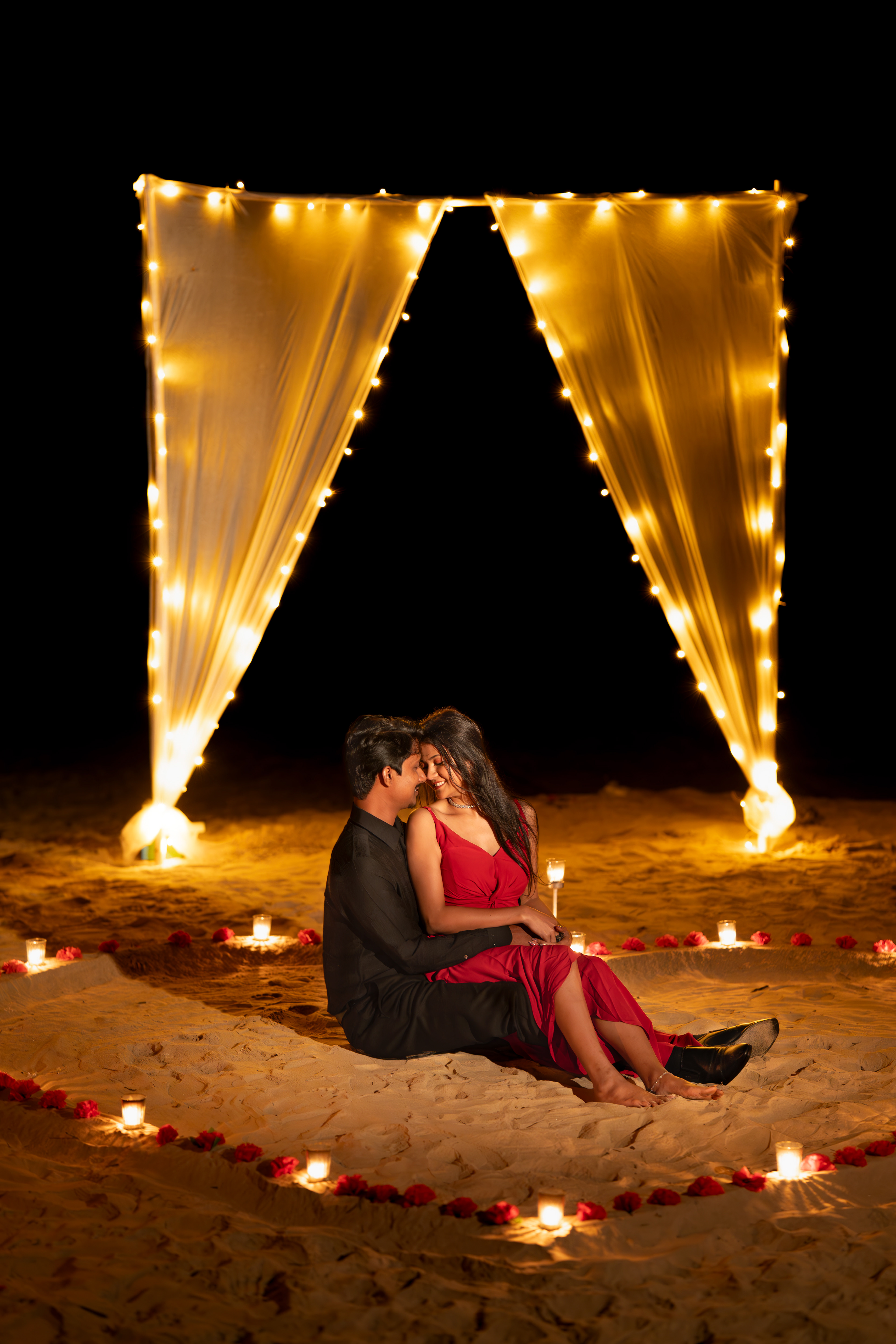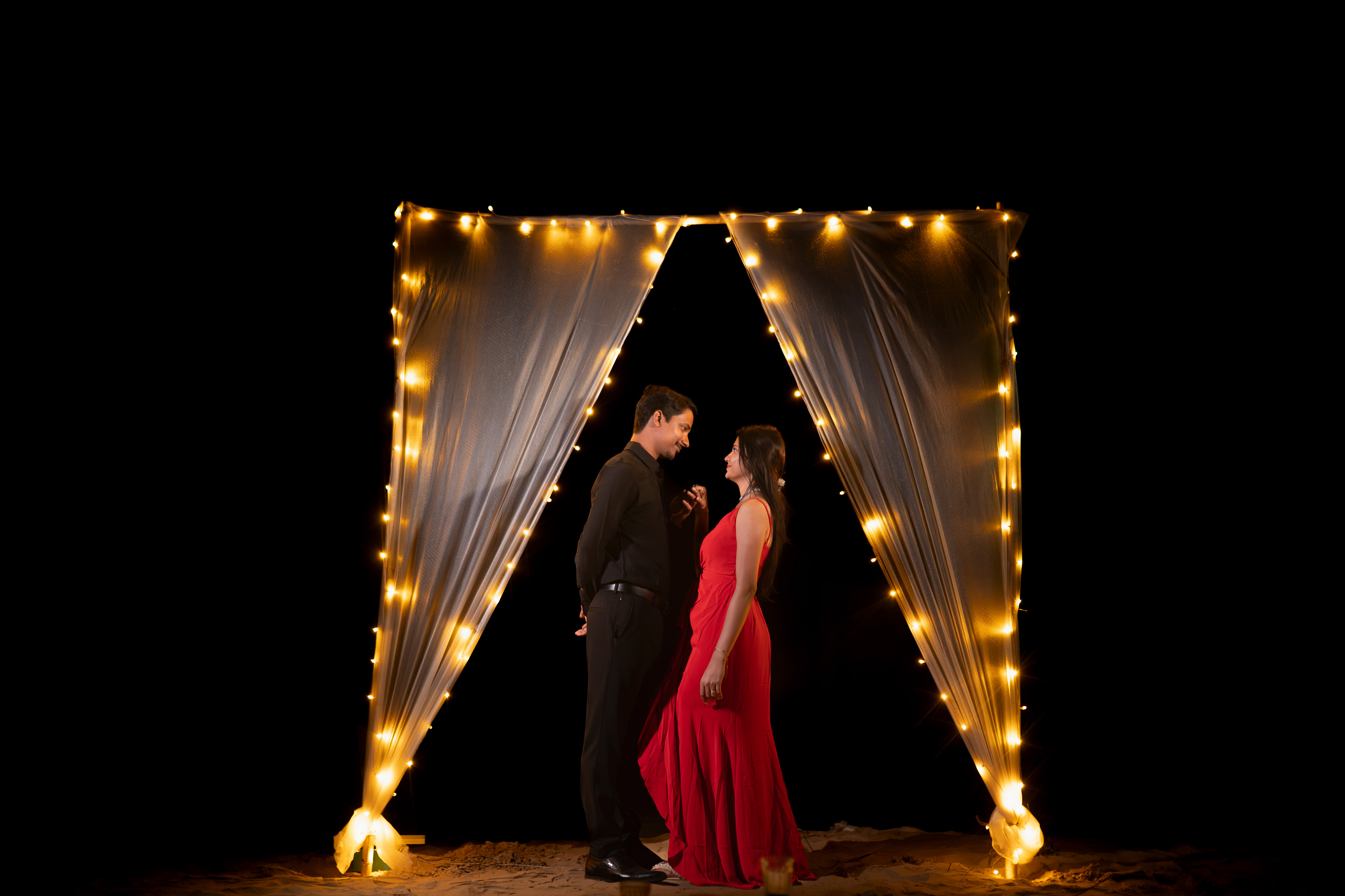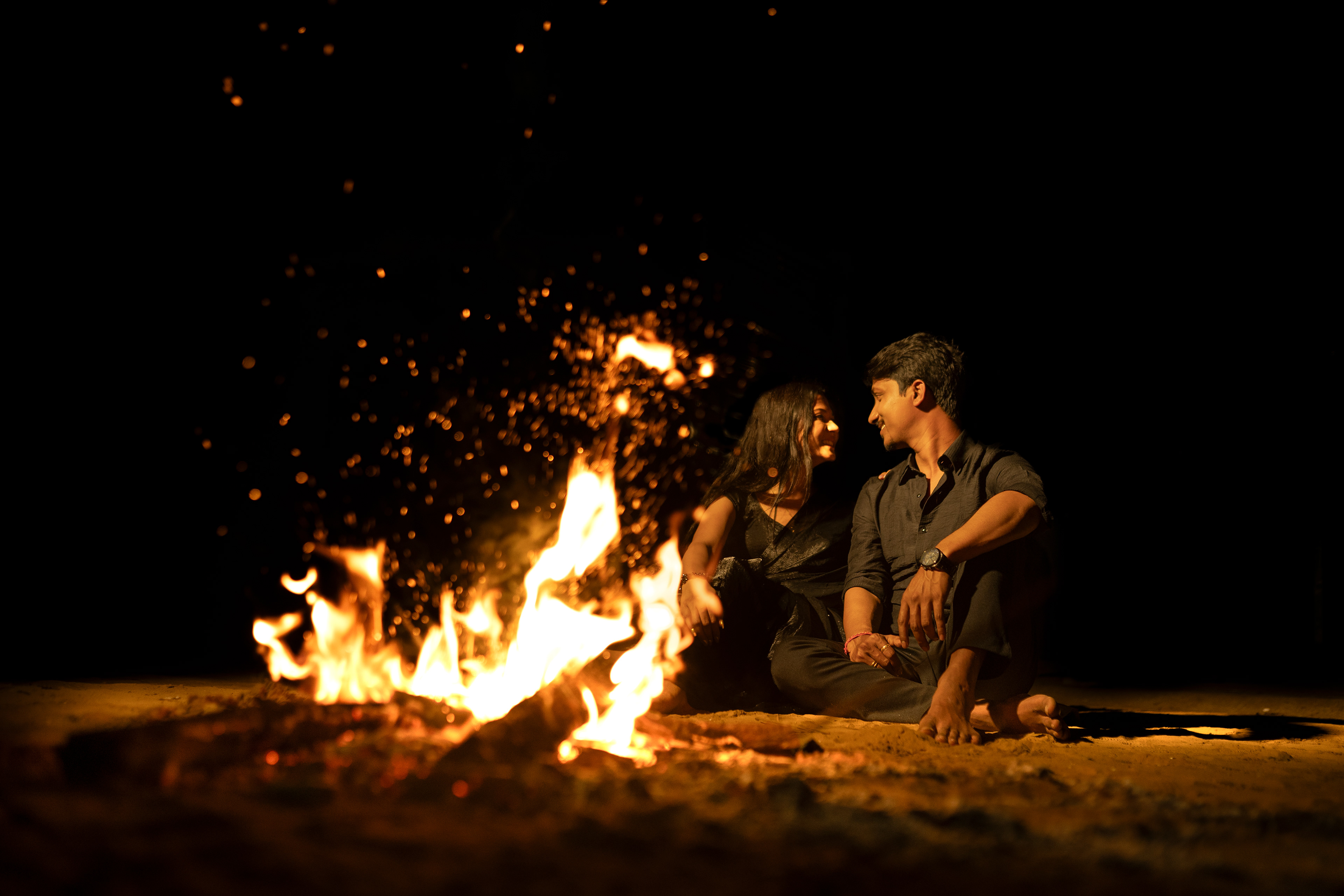 Experience a mesmerising musical pre-wedding shoot in Balasore, where golden beaches, enchanting jungles, and romantic bonfire nights create the perfect backdrop for timeless memories, capturing your love story in nature’s embrace.
